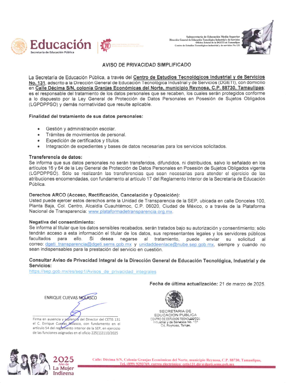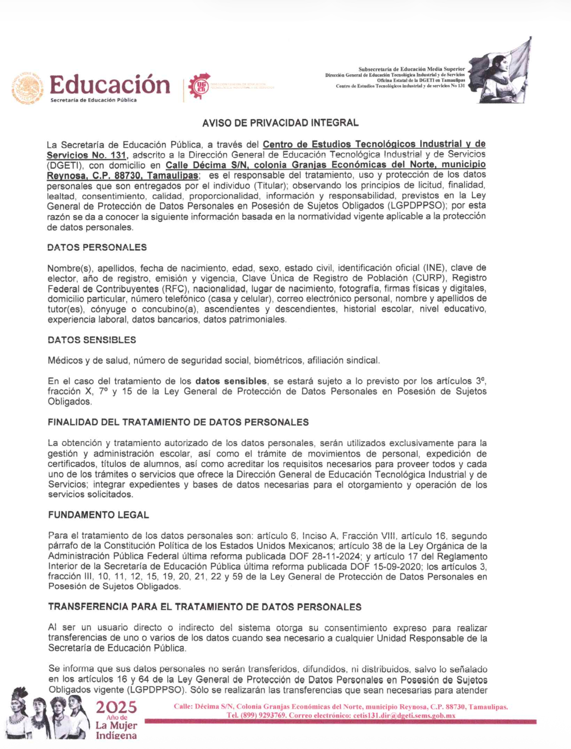 CENTRO DE ESTUDIOS TECNOLÓGICOS industrial y de servicios No. 131 "Miguel Hidalgo y Costilla"